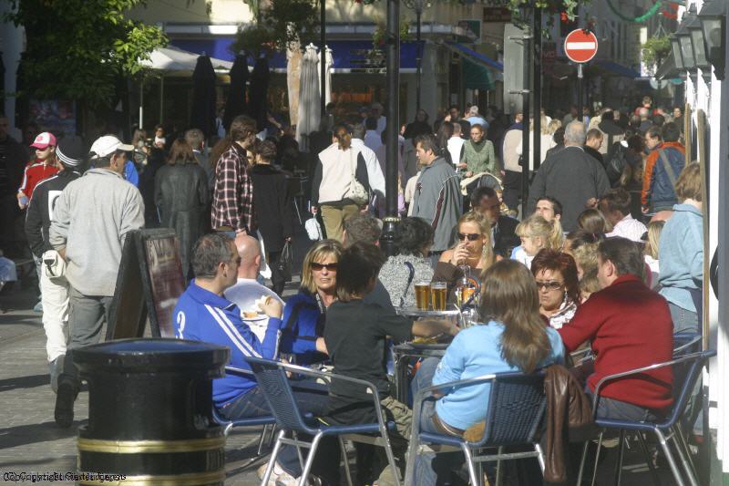 In der Stadt Gibraltar tobt das Leben. Viele Touristen sind auf der Suche nach zollfreien Schnäppchen oder auch nach hochwertigen Erzeugnissen, die dann anschließend durch den spanischen Zoll gebracht werden müssen. Bei manch einem kommt Freude auf, wenn der spanische Zöllner vor ihm einen Schmuggler erwischt hat, weil er weiß, dass dieser nun erst einmal abgelenkt ist. Das vermindert das eigene Risiko. Eigene Preisvergleiche haben ergeben, dass man hochwertige Erzeugnisse (z.B. Fotokameras) im Internet über www.guenstiger.de in jedem Fall auch günstiger einkauft. Eine Fahrt nach Gibraltar, nur wegen des „zollfreien Einkaufs“ lohnt auf keinem Fall. Schauen sie sich lieber die sonstigen Gegebenheiten an, wie, die auf dem Felsen freilebenden Affen.